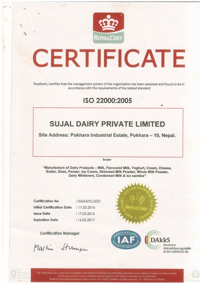SUJAL product integrity and our company's transparency are extremely important to us. Our valued customers can be assured that our products meet independent quality assurance standards through the following accreditations.